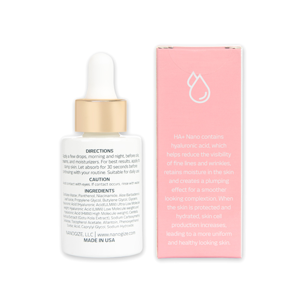 Serum HA+ NANO ( Hyaluronic Acid) là loại HA sử dụng bằng công nghệ NANO được nghiên cứu kỳ công và trải qua nhiều thử nghiệm lâm sàng bởi các nhà khoa học. HA+ NANO có kích thước siêu nhỏ, dễ dàng vượt qua hàng rào bảo vệ tự nhiên để thẩm thấu vào tầng da sâu nhất. HA+ NANO mang đến hiệu quả thần kì với làn da chỉ trong 2 tháng sử dụng: giảm độ sâu của nếp nhăn, cấp nước cho da đến 96% và tăng độ đàn hồi.